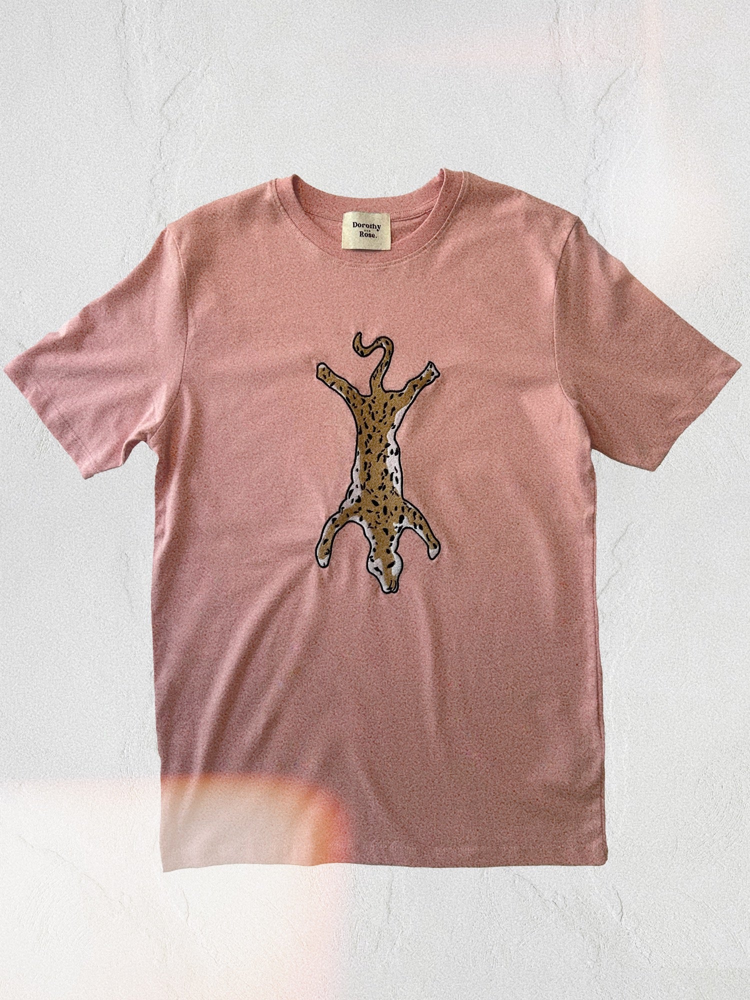 About our Leopard skin embroidered soft pink t-shirt: