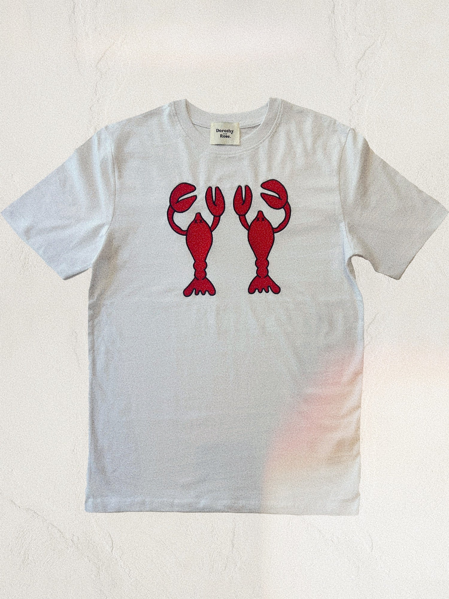 Be a walking work of art in our Lobsters embroidered t-shirt. Each t-shirt is individually embroidered with artwork by Rosie Madison.