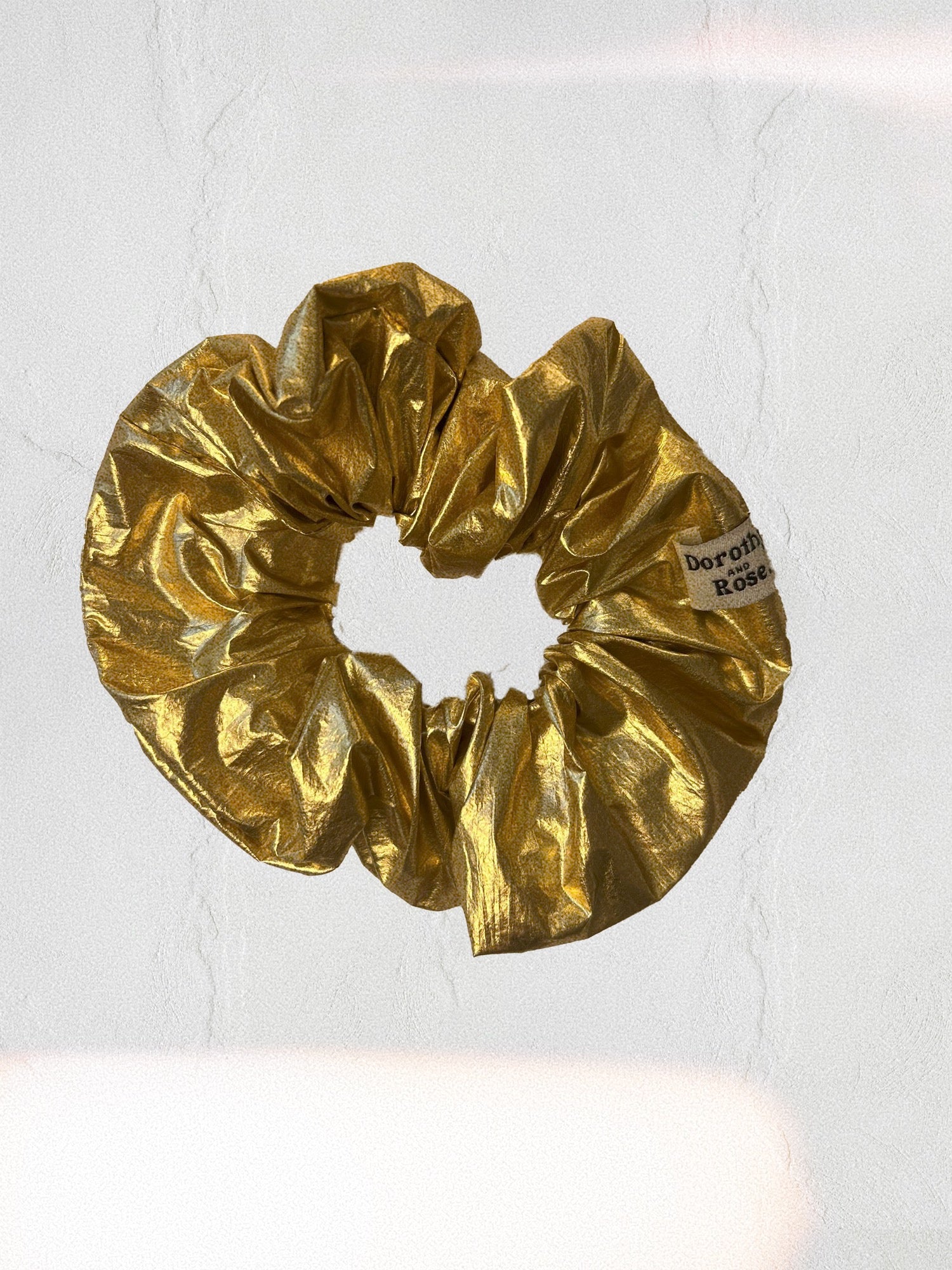Our outstandingly fabulous gold scrunchie is made from the off cuts of our iconic ultimate party dress. Wear it in your hair, on a bag or on your wrist as the ultimate accessory to any outfit.