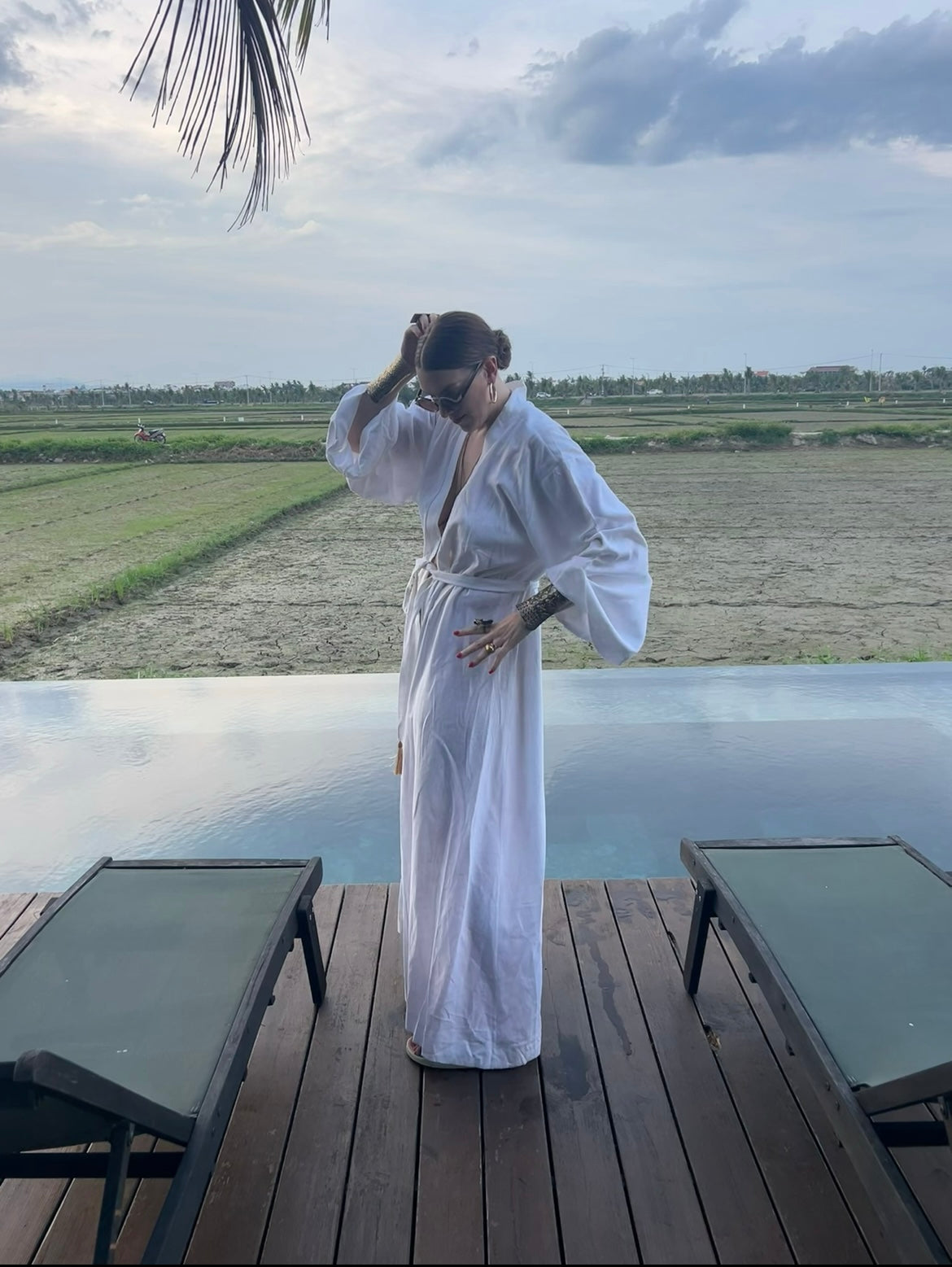 Our Dorothy and Rose white classic wrap gown is the ultimate elegant dress or beach cover up. Wear this stylish piece by the pool, to the restaurant or on the red carpet and you are guaranteed to be the center of attention.