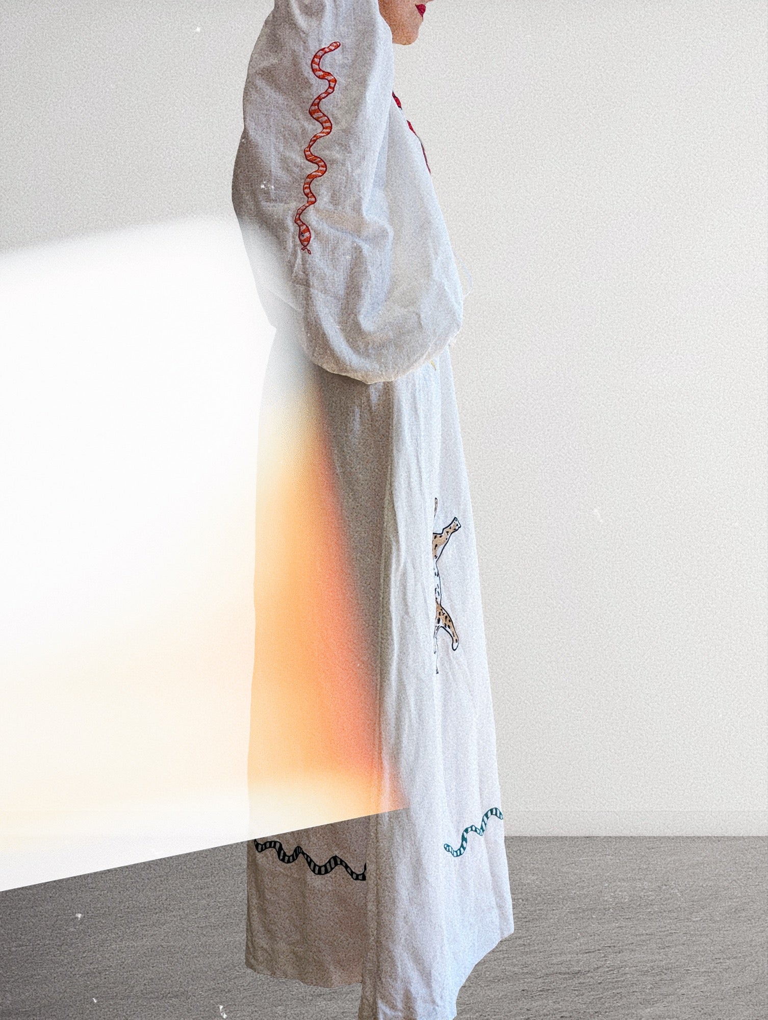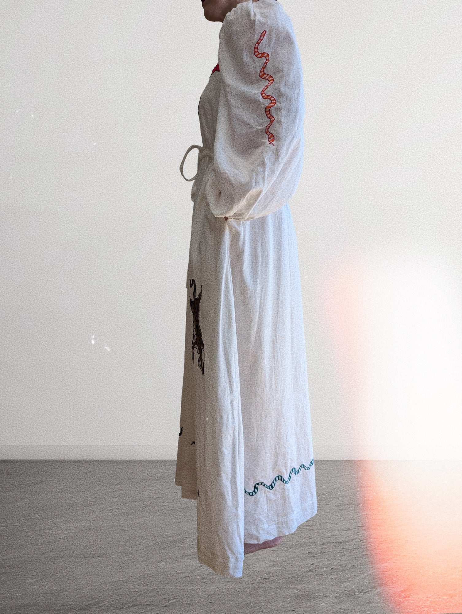 The dress that started it all. Our first love, our first creation. Be a walking work of art in our Dorothy and Rose white round neck embroidered dress.